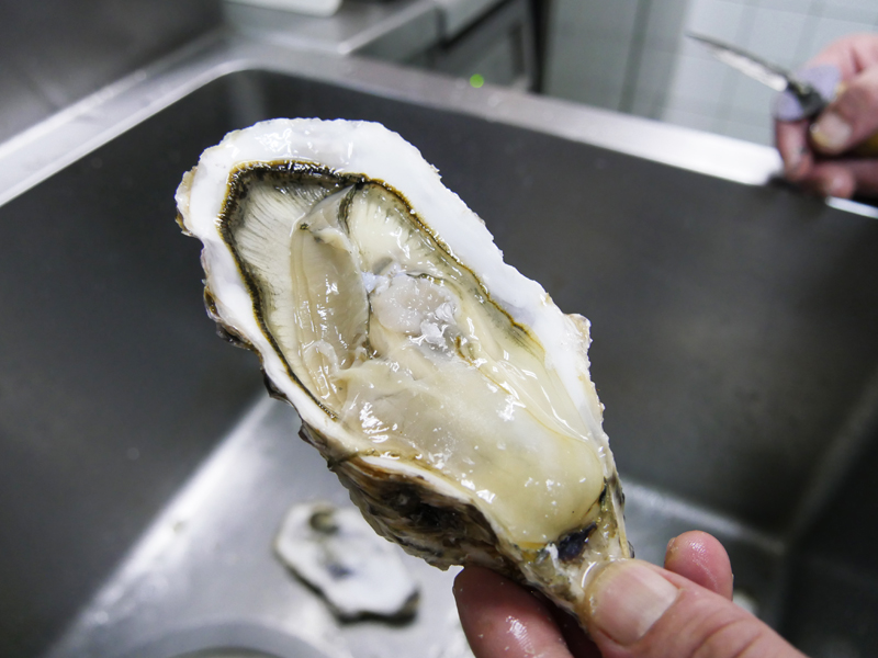 旬な食材 三陸釜石産 真牡蠣 2018.10.28 三陸釜石 真牡蠣 少し早めではありますが、お待ちかねのお楽しみ「三陸産の真牡蠣」が入荷してきました。 今回の牡蛎は釜石湾産。 今年の身入りは…… 20個ほど開けてみましたがすべて良い身入りでした。 今年の三陸産は期待できそうですよ。