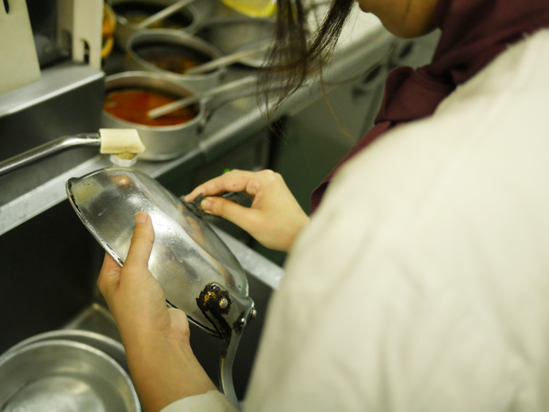 キッチンのクレンリネス 2018年5月31日 5月最後の日。今日はキッチンの清掃。 鍋磨き。 スタッフのことも考えて、いつでも「完璧」とはいきませんがお客様との信頼関係のためにピカピカにするよう心がけています。きれい=清潔にするには時間がかかるんです。だから時には23時近くまで掃除することもあります。これは今の時代自慢にならないですかね……。でももし自分が食べに行くなら綺麗にしているお店で食べたい。スタッフも同じ気持ちです。だから掃除大変だけど頑張ります(^^)