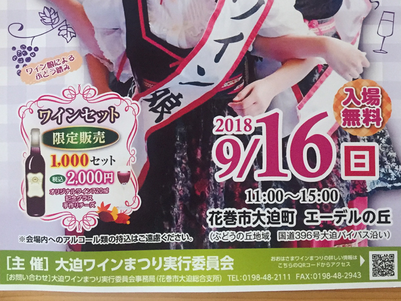 明日9月16日花巻市大迫町にて、おおはさまワインまつりが開催されます。ワイン愛好家の皆さまぜひ訪れてみてはいかがでしょうか。私も個人的にもの凄ーく行きたいのですが、もちろんお店がありますので(;^ω^)