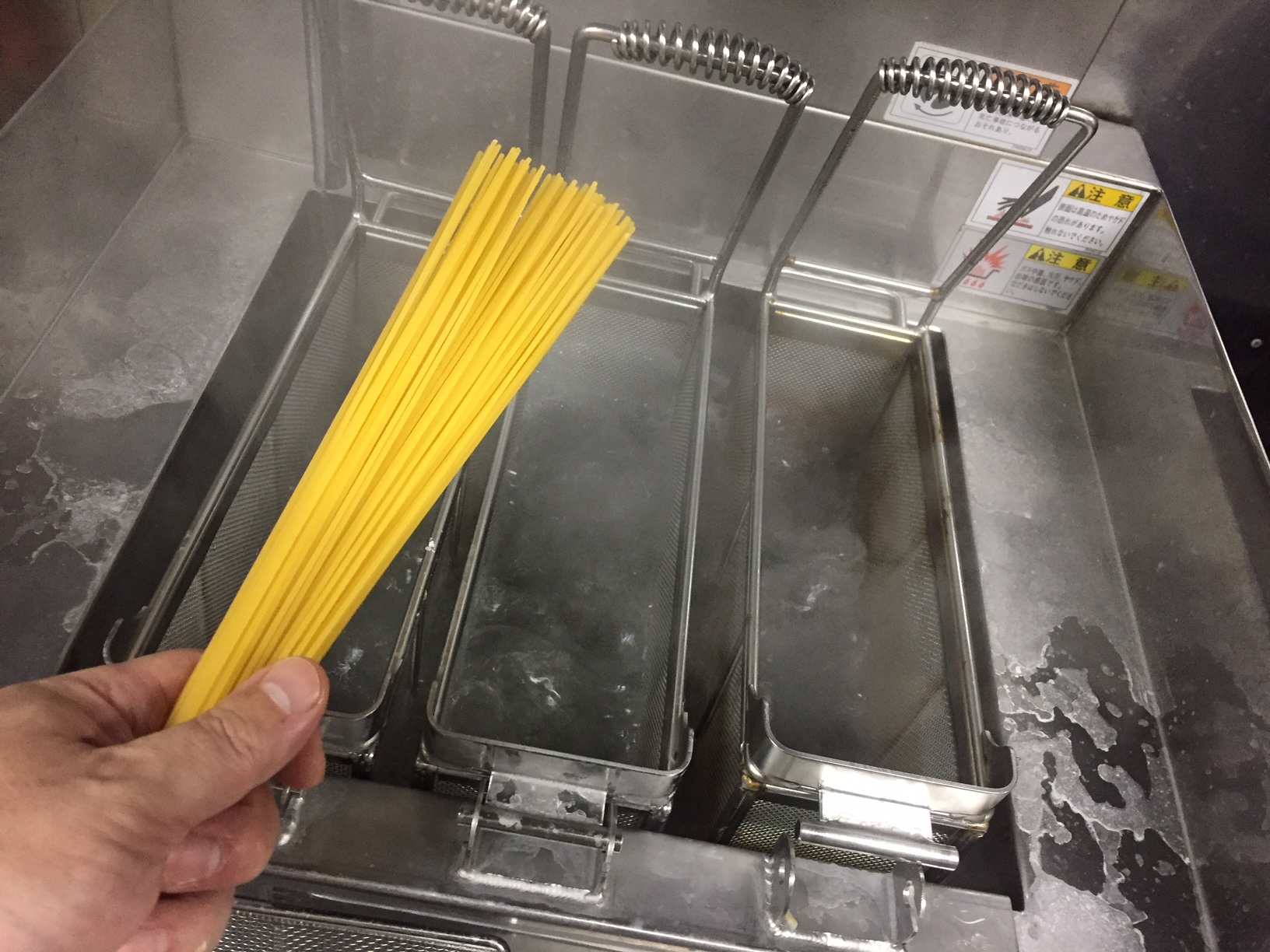 もちろん実際には硬めに茹で上げその後一番美味しいところまで調整するのですが、現場ではその時間を数秒でも短縮したい。適切な「勘」で仕事したいのです。