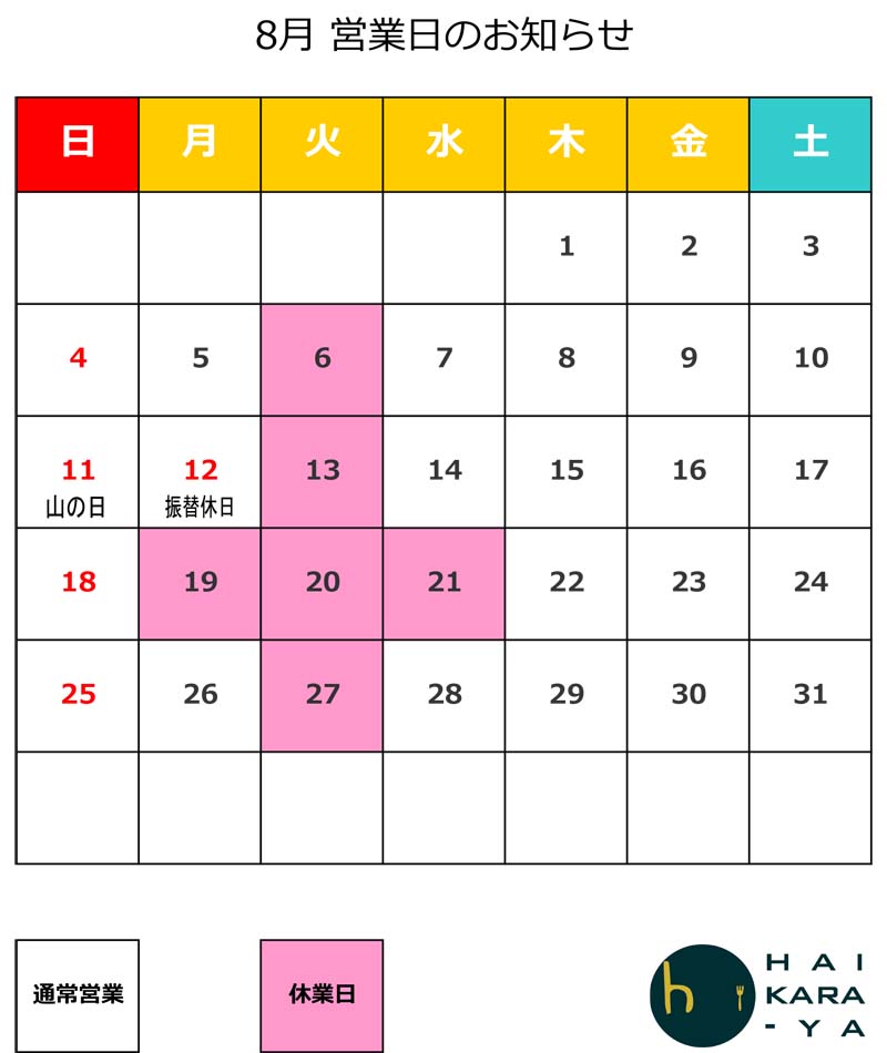 定休日の他に、19日(月)~21日(水)休業いたします。