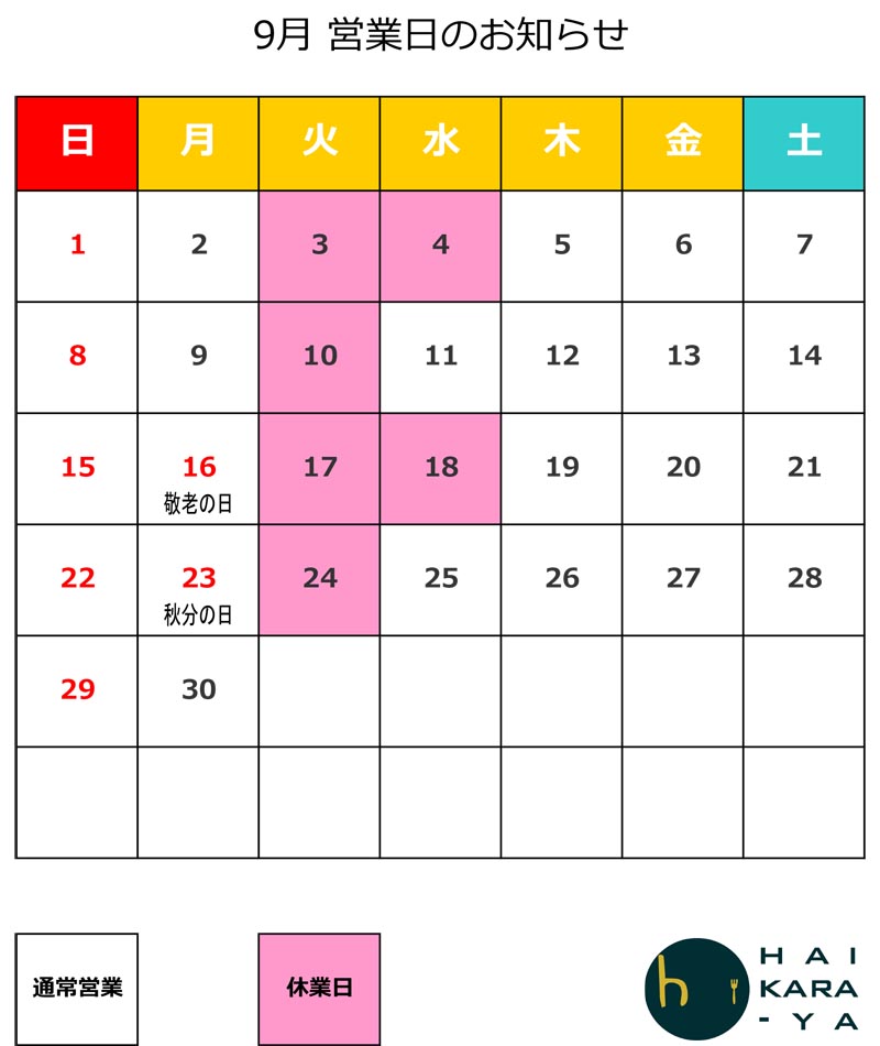 今月は定休日の他に、4日(水)、18日(水)休業いたします。