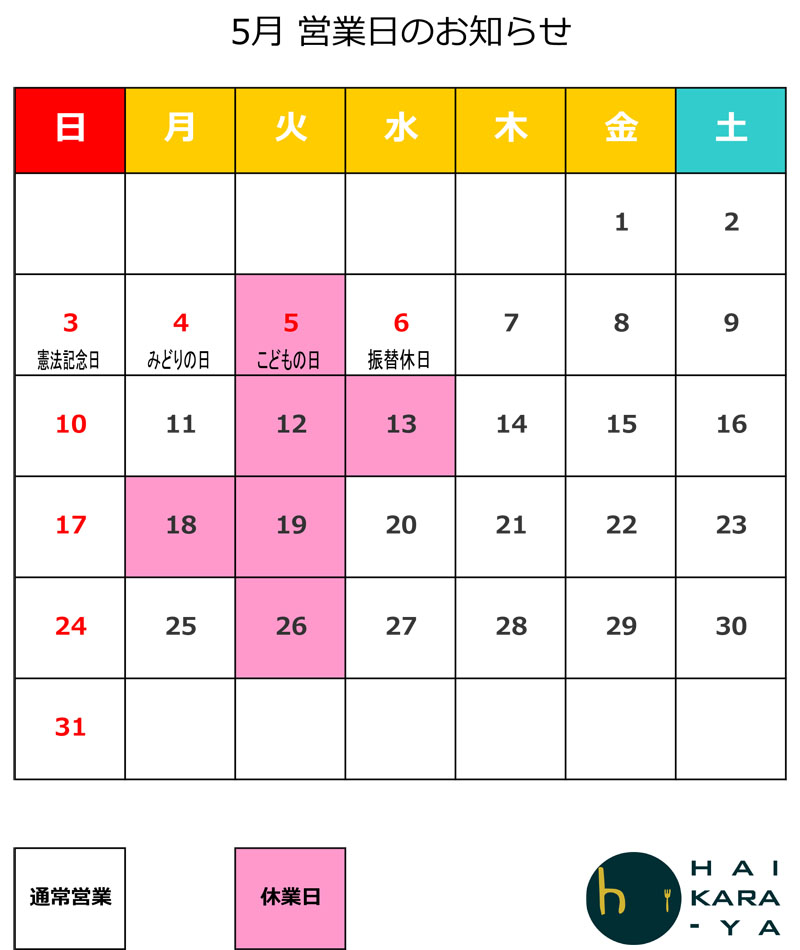 今月は「12日(火)・13日(水)」「18日(月)・19日(火)」を連休とさせて頂きます。