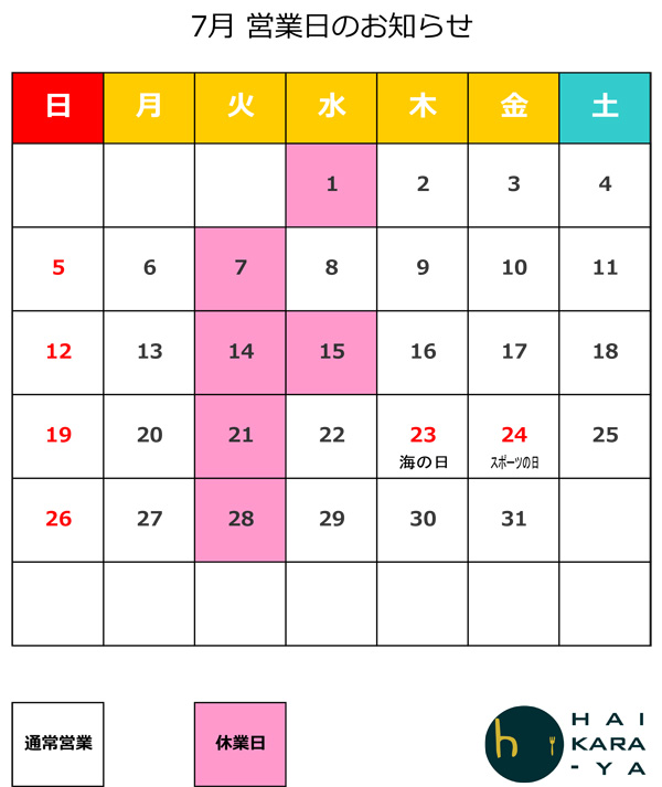 ※都合により7月20日(月)は15:00閉店とさせていただきます。